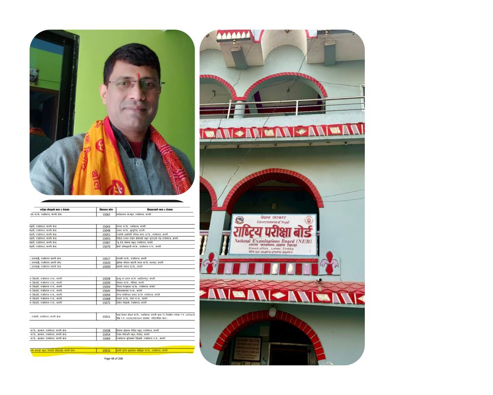 हामीले एक विद्यालयका सञ्चालकको रूपमा बोर्डका शाखा अधिकृत चन्द्रदेव यादवलाई फोन गरेका थियाै, मीले बोल्नै परेन्। उनले नै भने, ‘तपाई लाली गुरासँ इङलिश वोर्डिङ स्कुलकाो सर होइन, हामीले ‘होु भन्यो। उनले भन्यो, ‘परीक्षा केन्द्र ‘सूची हेर्नुस्, केन्द्र त त्यही परेको छ ; तपाईको केन्द्र शंकर पब्लिक एकेडेमी मै छ। कस्ले केन्द्र त्यहाँ नपरेको भन्यो। भनेकै ठाउँमा पारि दिएको छु।’