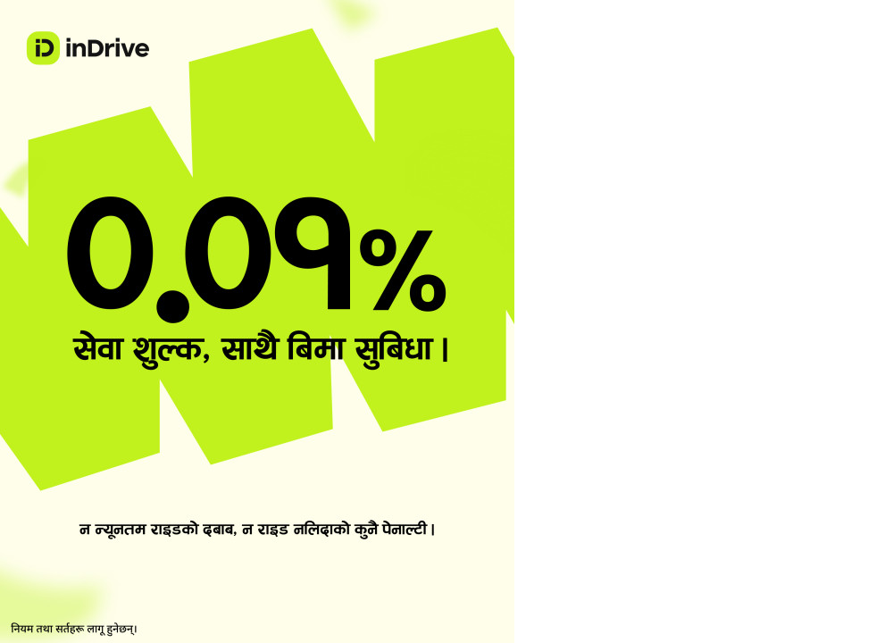 Beyond immediate benefits, the campaign also serves as a learning initiative, allowing inDrive to better understand the impact of near-zero service fees on driver engagement, service quality, and long-term platform sustainability. The company remains committed to responsible growth, regulatory compliance, and fair competition, while contributing positively to Nepal’s evolving digital and gig-economy landscape.